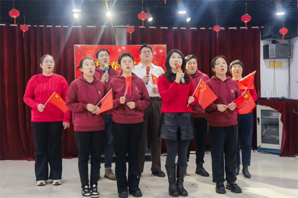 演出形式豐富多樣,既有烘托節(jié)日氣氛的合唱歌曲,也有表達愛國愛企深情的詩歌朗誦。